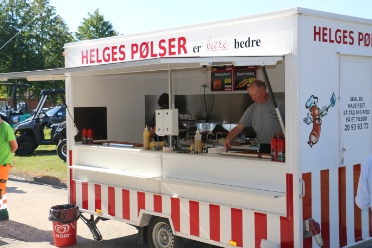 Helges Pølser stiller op med sin pølsevogn og serverer pølser og andet godt
