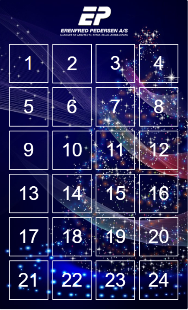 Fra den 1. december skyder vi årets Erenfred Pedersen A/S julekalender igang! Hver dag vil det være muligt at vinde fede gaver, ligeså vel til hende og til ham. Det eneste du skal gøre er, at åbne en låge hver dag så er du med i lodtrækningen om premien.