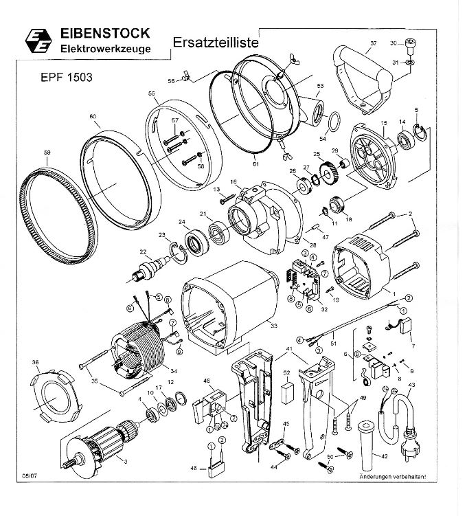 Eibenstock EPF 1503 er en facadefræser med en kraftig 1.500 watt motor, der gør det let at fræse maling, puds samt løstsiddende ujævnheder af større beton- og cementflader. Facadefræseren er udstyret med ergonomiske håndtag. Motoren er placeret over fræsehovedet, hvilket forlænger maskinens levetid. EPF 1503 er integreret udtag til industristøvsuger. Dybdeindstillingen er 0,5 - 4,0 mm og kører med 4.000 omdr./min.