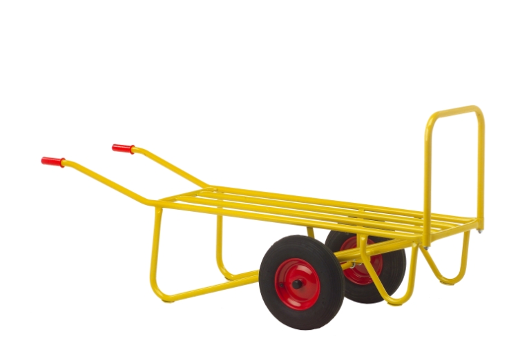 Ravendo halmballe-/gartnervogn med luftgummihjul, stålfælg og glidelejer. Løfter maksimalt 400 kg og vejer i sig selv 20 kg.